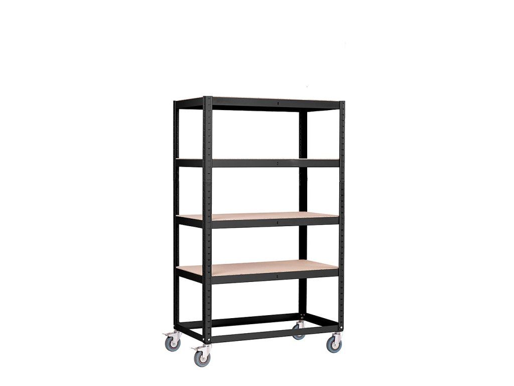 Ruchomy regał półkowy Trestles RNDP 1920x905x505, nośność 120 kg, 4 półki, czarny