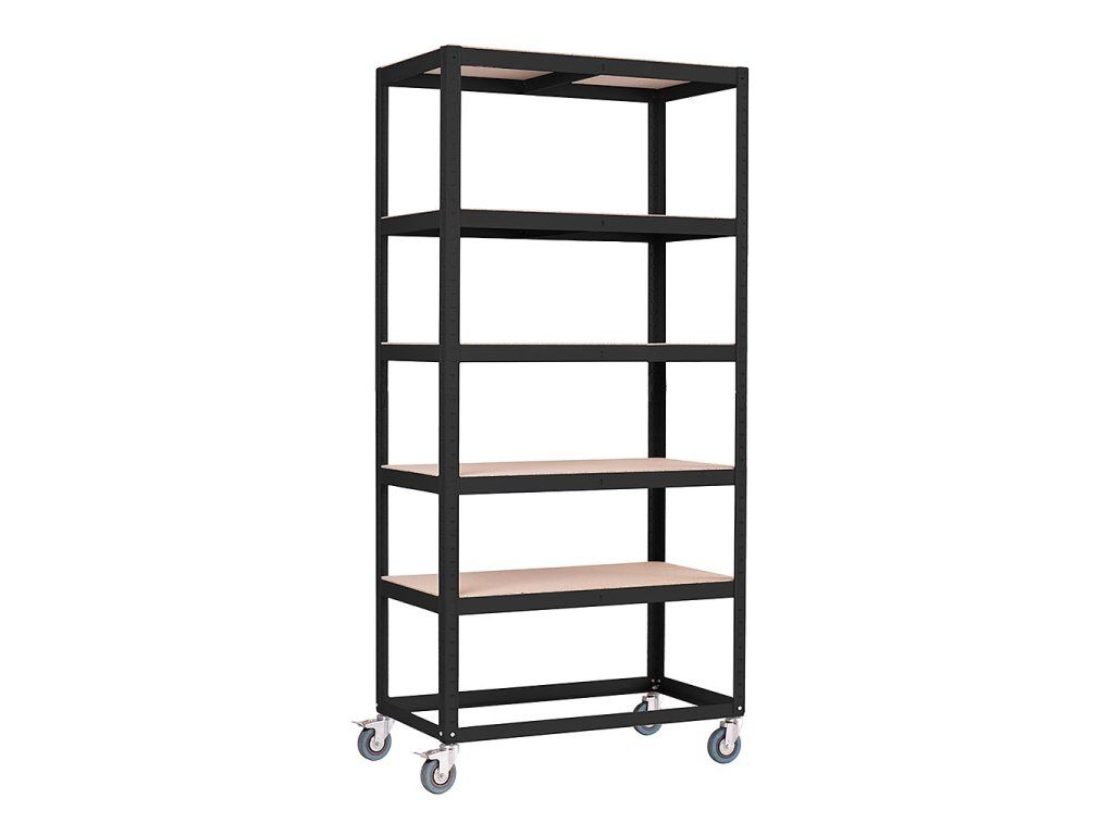 Ruchomy regał półkowy 1920x905x505, 5 półek, czarny
