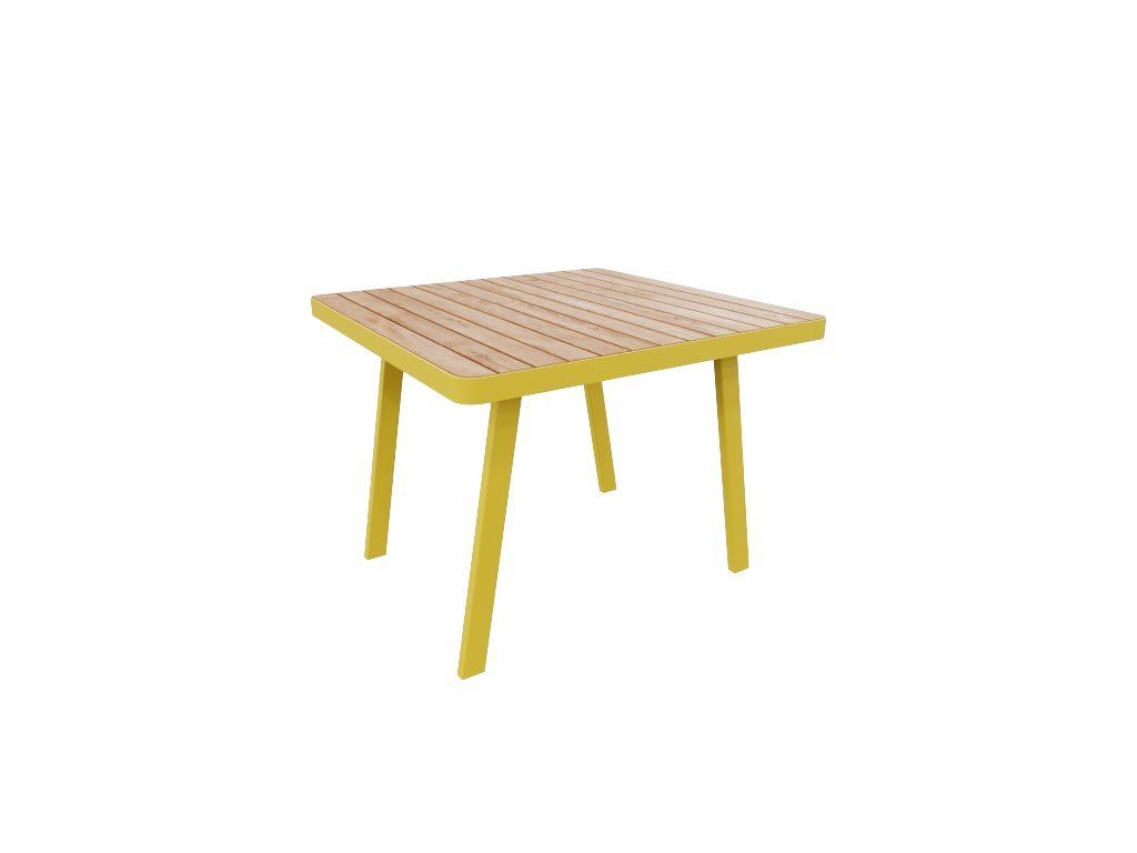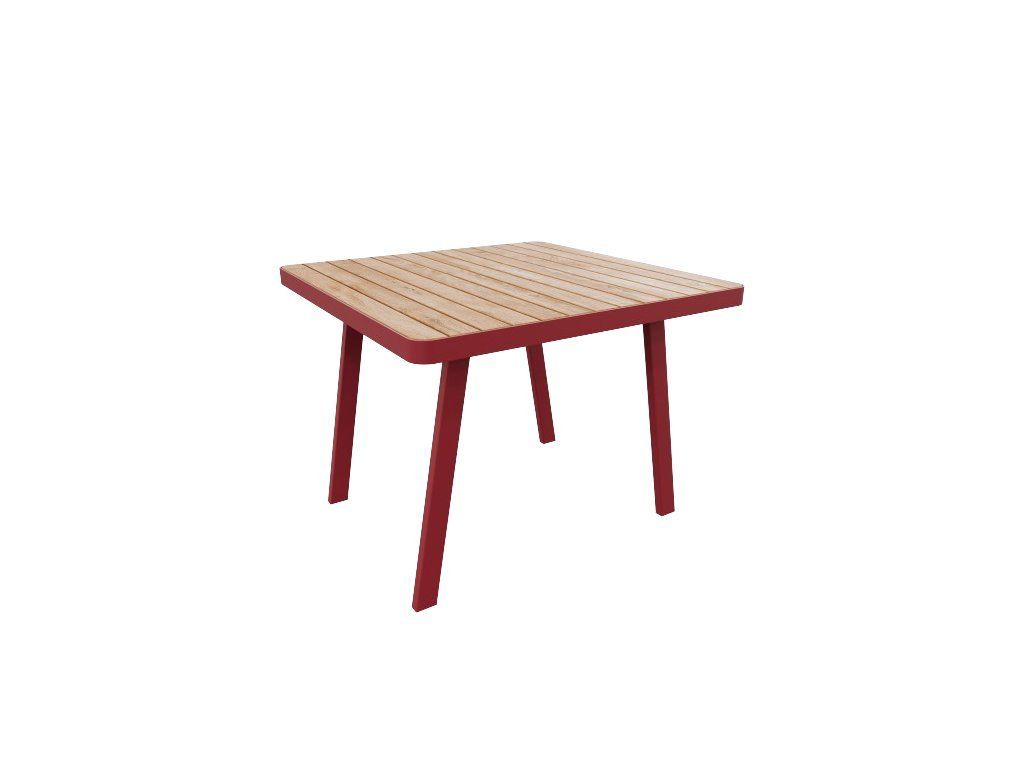 Stół wykonany jest z wysokiej jakości stalowej konstrukcji, odpornej na warunki atmosferyczne oraz korozję. Blat stołu stanowi drewniana deska wykonana z litego drewna.