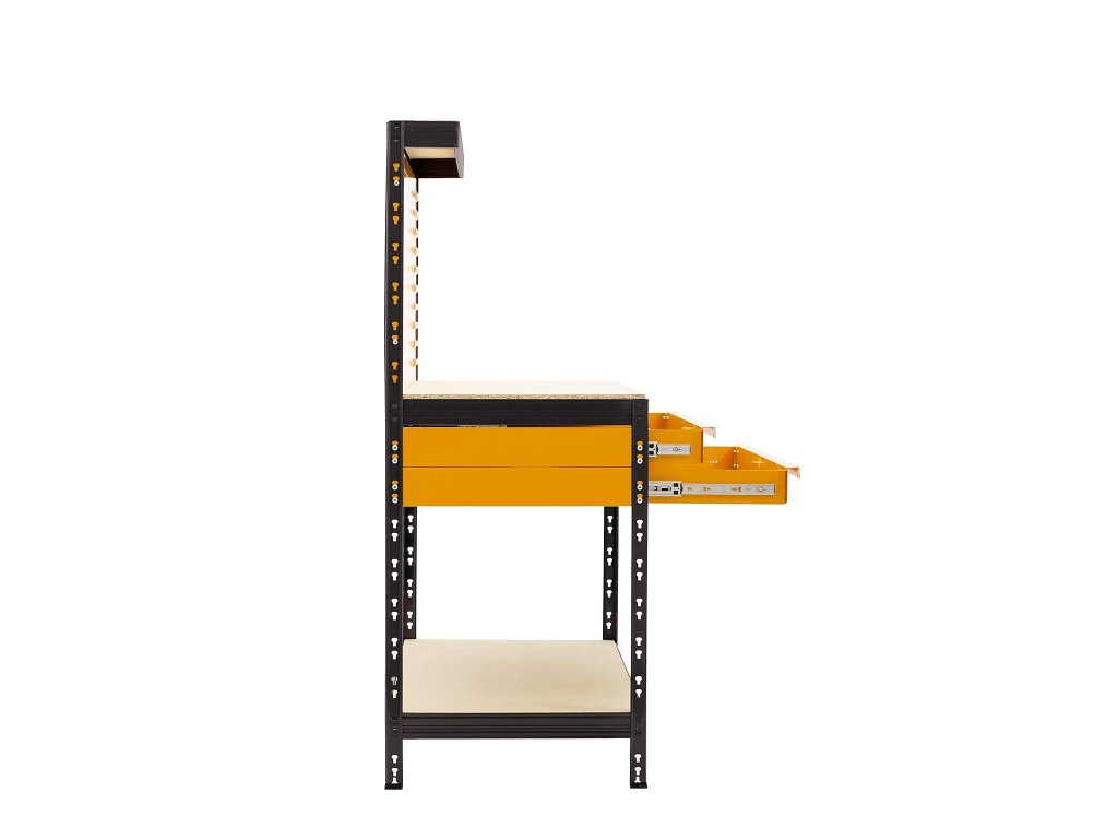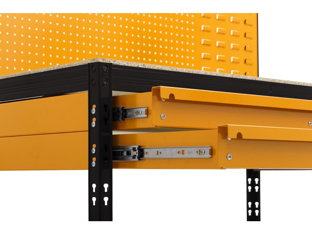 - Panel organizacyjny: Tylny panel organizacyjny oferuje różne opcje montażu narzędzi i skrzynek. Dzięki temu panelowi obszar roboczy będzie zawsze czysty i przejrzysty.