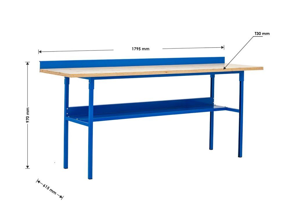 Nasz stół warsztatowy wyposażony jest w wysokiej jakości blat roboczy ze sklejki o grubości mm, który zapewnia stabilną i trwałą powierzchnię dla Twoich projektów. Stalowa konstrukcja zapewnia wytrzymałość i trwałość, a malowane proszkowo wykończenie w kolorze niebieskim(RAL5017) nadaje stołowi elegancki wygląd i chroni go przed czynnikami atmosferycznymi.