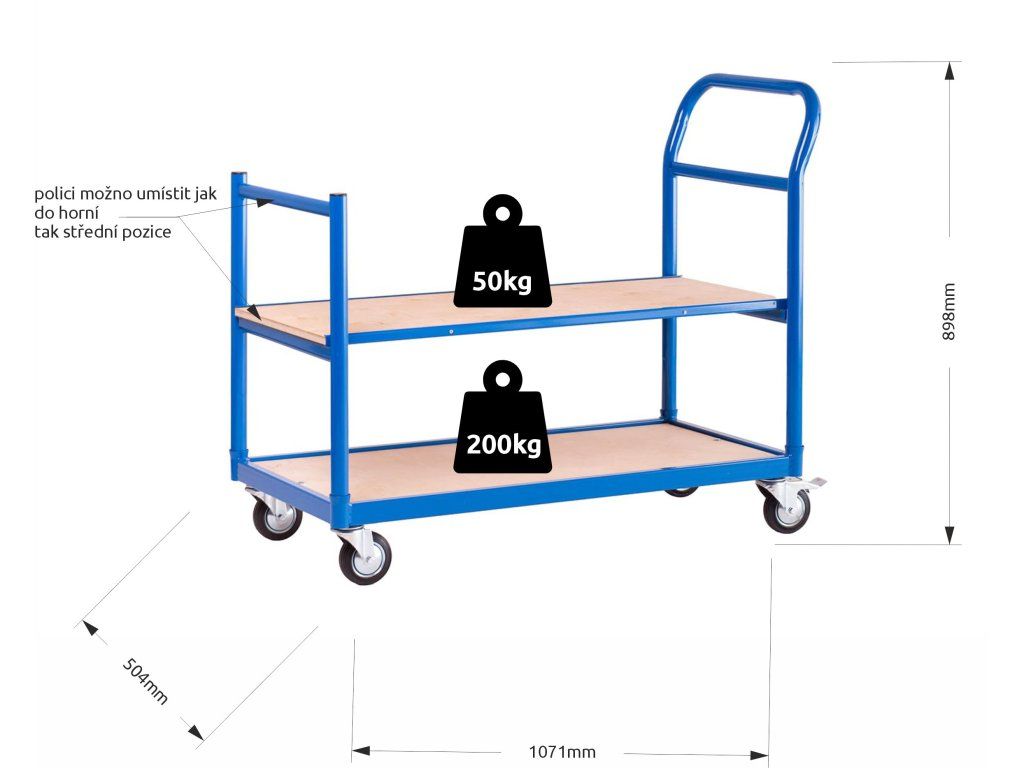 Wielofunkcyjny wózek transportowy zaprojektowany do przewożenia ładunków w magazynach, warsztatach, halach produkcyjnych.