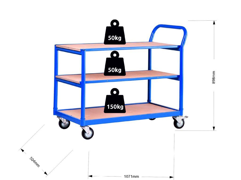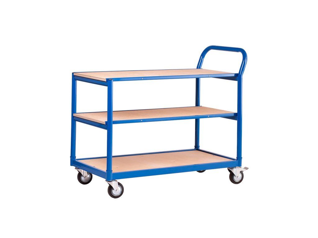 Wielofunkcyjny wózek transportowy zaprojektowany do przewożenia ładunków w magazynach, warsztatach, halach produkcyjnych.