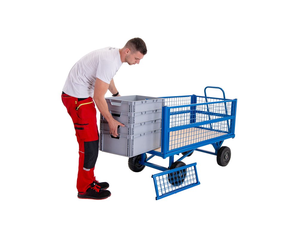 wózek zmienny z ośmioma zdejmowanymi ścianami bocznymi, które mogą być używane w różnych konfiguracjach